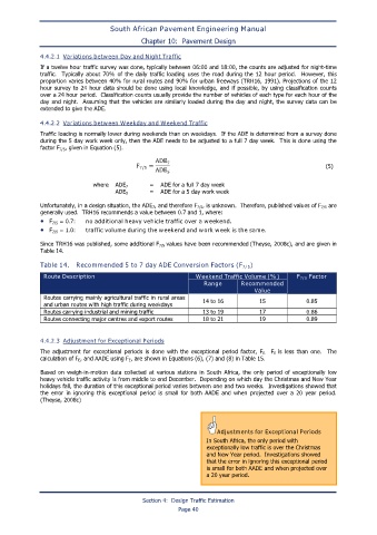 proportion varies between 40% for rural routes and 90% for urban freeways (TRH16, 1991). Projections of the 12