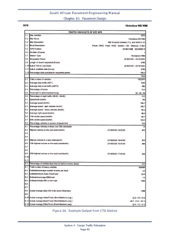 South African Pavement Engineering Manual Chapter 10: Pavement Design Figure 26. Example Output from CTO Station Section 4: Design Traffic Estimation Page 49