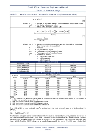 Table 30. Transfer Function and Constants for Shear Failure (Granular Materials)