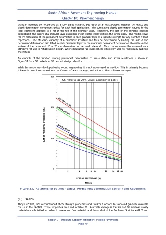 Theyse (2008b) has recommended shear strength properties and transfer functions for unbound granular materials