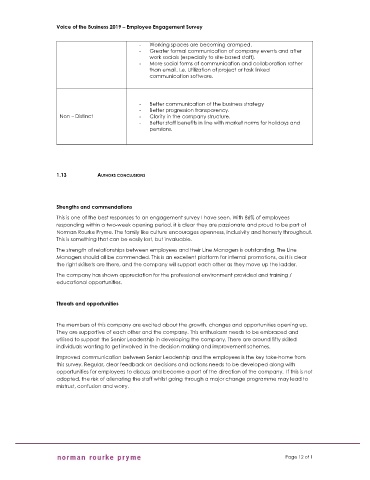 this survey. Regular, clear feedback on decisions and actions needs to be developed along with