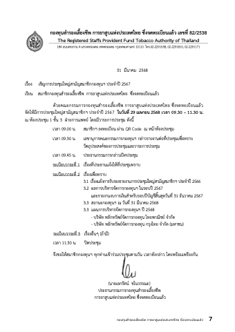 31 มีนาคม 2568 เร่ือง เชิญการประชุมใหญ่สามัญสมาชิกกองทุนฯ ประจําปี 2567