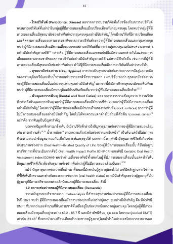ภาวะสมองเสื่อมมีสุขอนามัยชองปากท่ีแยกวากลุมควบคุมอยางมีนัยสําคัญ9 โดยมีงานวิจัยที่มีการเปรียบเทียบ