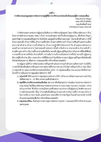 บทที่ 4 การคัดกรองและดูแลสุขภาพชองปากกลุมผูท่ีมีภาวะปริชานบกพรองเล็กนอยและผูมีภาวะสมองเส่ือม