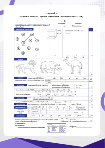 72 ภาคผนวกที่ 2 แบบทดสอบ Montreal Cognitive Assessment Thai version (MoCA-Thai)