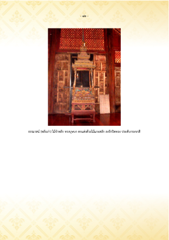 -12- ธรรมาสน (หลังเกา) ไมจําหลัก ทรงบุษบก ตกแตงดวยไมแกะสลัก ลงรักปดทอง ประดับกระจกสี