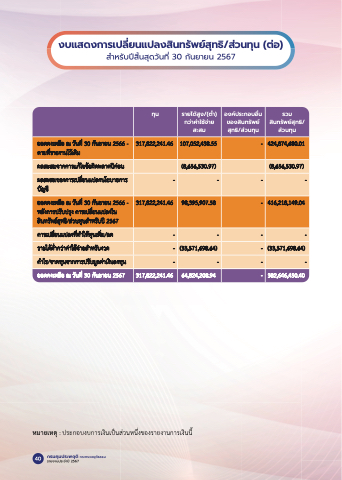 ยอดคงเหลืือ ณ วัันท่ี่ี 30 กัันยายน 2566 - หลัังการปรัับปรุุง การเปลี่่ียนแปลงใน สิินทรััพยสุุทธิิ/สวนทุุนสําหรัับป 2567