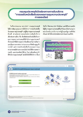 ในปงบประมาณ พ.ศ.2567 กรมคุมประพฤติ ไดม กี ารพฒั นารปู แบบการใหบ รกิ าร “การขอรบั หนงั สอื รบั รองผลการคมุ ประพฤต”ิ แกผ พู น การคมุ ความประพฤติ ดวยดี ผานชองทางออนไลนจากเดิมมีบริการ