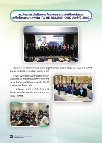 แกไ้ ขปญั หายาเสพตดิ TO BE NUMBER ONE ประจาํ ปี 2567