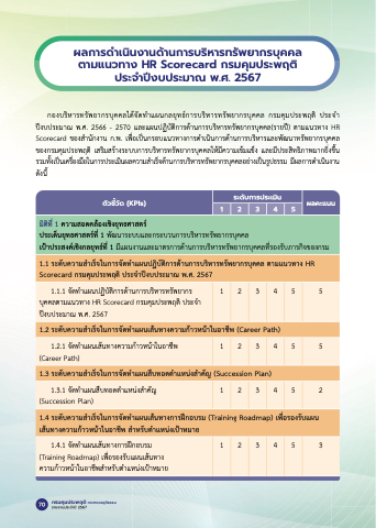 ผลการดําเนินงานด้านการบริหารทรัพยากรบุคคล ตามแนวทาง HR Scorecard กรมคุมประพฤติ ประจําปีงบประมาณ พ.ศ. 2567
