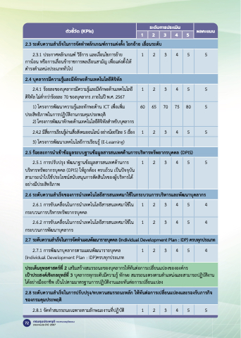 ตัวช้ีวัด (KPIs) ระดับการประเมิน ผลคะแนน