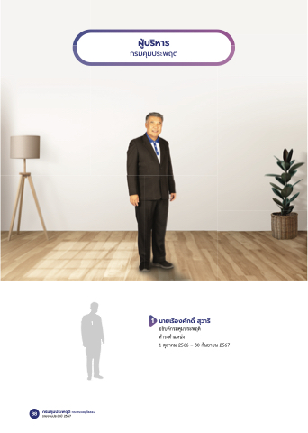 ผู้บริหาร กรมคุมประพฤติ 88 กรมคุมประพฤติ กระทรวงยุติธรรม รายงานประจําปี 2567 1 1 นายเรืองศักด์ิ สุวารี อธิบดีกรมคุมประพฤติ ดํารงตําแหนง 1 ตุลาคม 2566 – 30 กันยายน 2567
