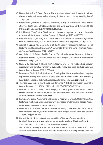 45. Li L, Zhang Q, Yang D, et al. Tooth loss and the risk of cognitive decline and dementia: A meta-analysis of cohort studies. Frontiers in Neurology. 2023;14:1103052.