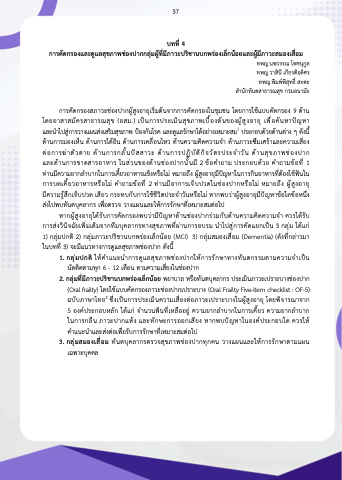 บทที่ 4 การคัดกรองและดูแลสุขภาพชองปากกลุมผูท่ีมีภาวะปริชานบกพรองเล็กนอยและผูมีภาวะสมองเส่ือม