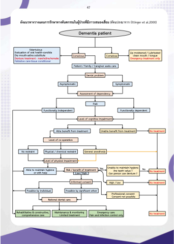 ผังแนวทางวางแผนการรักษาทางทันตกรรมในผูปวยที่มีภาวะสมองเสื่อม (ดัดแปลงมาจาก Ettinger et al.2000) Dementia patient