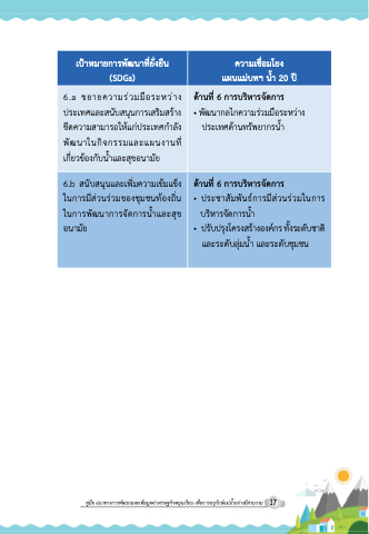 6.b สนับสนุนและเพิ่มความเขมแข็ง ในการมีสวนรวมของชุมชนทองถิ่น ในการพัฒนาการจัดการนํ้าและสุข อนามัย