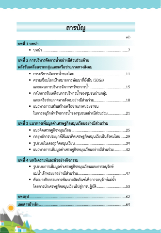 แนวคิดเศรษฐกิจหมุนเวียน .............................................................25 กลยุทธการประยุกตใชแนวคิดเศรษฐกิจหมุนเวียนในสังคมไทย .....29 รูปแบบโมเดลธุรกิจหมุนเวียน .........................................................34 แนวทางการเพ่ิมมูลคาเศรษฐกิจหมุนเวียนอยางมีสวนรวม.............42