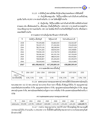 3.1.2.7 รายจ่าย ประมาณรายจ่าย ประจําปี 2567 ท่ีประชุมใหญ่ พิจารณาอนุมัติ งบประมาณไว้เป็น จํานวนเงิน 11,932,960 บาท ทั้งนี้ให้ถัวเฉลี่ยได้ทุกหมวดรายจ่าย ยกเว้นหมวดครุภัณฑ์