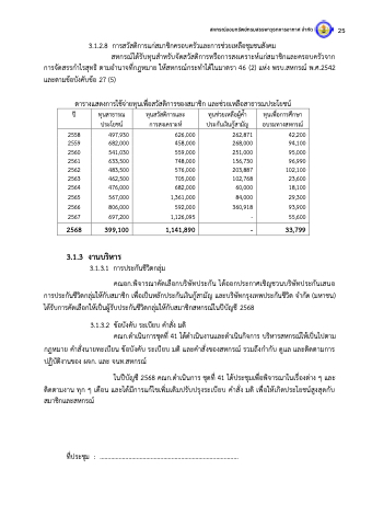 3.1.2.8 การสวัสดิการแก่สมาชิกครอบครัวและการช่วยเหลือชุมชนสังคม สหกรณ์ได้รับทุนสําหรับจัดสวัสดิการหรือการสงเคราะห์แก่สมาชิกและครอบครัวจาก