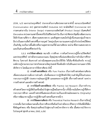 3) การวิจัยผลงานศิลปะหรือTheoreticalPracticeResearchเป็นการเรียนรู้ จากคนอนื่ วเิ คราะหผ์ ลงานคนอนื่ ดว้ ยการศกึ ษาหรอื คน้ ควา้ อยา่ งมรี ะบบ มวี ทิ ยาการวจิ ยั เพอื่ ใหไ้ ดม้ า ซึ่งข้อมูลคาตอบ หรือ ข้อสรุปรวมที่จะนาไปสู่ความก้าวหน้าทางวิชาการ หรือ เอื้อต่อการนาวิชาการ ไปประยุกต์ (สุชาติ เถาทอง, 2563, น.36)