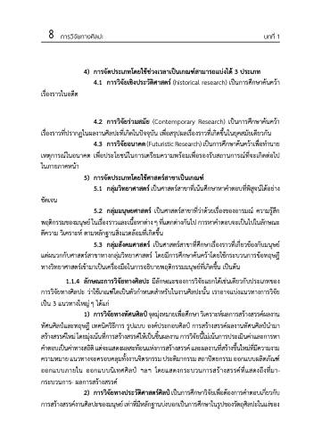 2) การวจิ ยั ทางประวตั ศิ าสตรศ์ ลิ ป์ เปน็ การศกึ ษาวจิ ยั เพอื่ ตอ้ งการคา ตอบเกยี่ วกบั การสรา้ งสรรคง์ านศลิ ปะของมนษุ ย์ เทา่ ทมี่ หี ลกั ฐานบง่ บอกเปน็ การศกึ ษาในรปู ของวตั ถศุ ลิ ปะในแงข่ อง