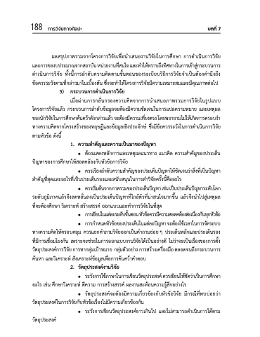 เมื่อผ่านการกลั่นกรองความคิดจากการนาเสนอภาพรวมการวิจัยในรูปแบบ โครงการวิจัยแล้ว กระบวนการลาดับข้อมูลจะต้องมีความชัดเจนในการแปลความหมาย และเหตุผล ของนกั วจิ ยั ในการศกึ ษาคน้ ควา้ ดงั กลา่ วแลว้ จะตอ้ งมคี วามเทยี่ งตรง โดยพยายามไมใ่ หเ้ กดิ การครอบงา ทางความคิดจากโครงสร้างของทฤษฎีและข้อมูลเชิงประจักษ์ ซึ่งมีข้อควรระวังในการดาเนินการวิจัย ตามหัวข้อ ดังนี้