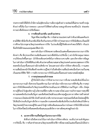ปญั หาทพ่ี บบอ่ ยทสี่ ดุ คอื การไมส่ ามารถแปลความคา วา่ ตวั แปรตน้ และตวั แปร ตามใหช้ ดั วา่ สงิ่ ใดคอื ตวั แปรตน้ สงิ่ ใดคอื ตวั แปรตามทา ใหก้ ารกา หนดกรอบการวจิ ยั ไมช่ ดั เจนเปน็ ผลให้ การศึกษาไม่บรรลุตามวัตถุประสงค์ของการวิจัย ในประเด็นน้ีผู้วิจัยต้องหาคาตอบให้ได้ว่า ตัวแปร ที่แท้จริงมีลักษณะและคุณสมบัติอย่างไร