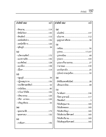 - ทัศนธําตุ .................................................114 - ทัศนียวิทยํา.............................................135 - ทัศนศิลป์ ................................................110 - เทคนิคเชิงช่ําง.........................................136 - เทคนิควิธีกําร..........................................120 - ทุติยภูมิ.....................................................34