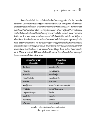 ตารางที่ 3.1 เปรียบเทียบลักษณะวิทยาศาสตร์ และศิลปะ (ที่มา : สุชาติ เถาทอง, 2559, น.26)