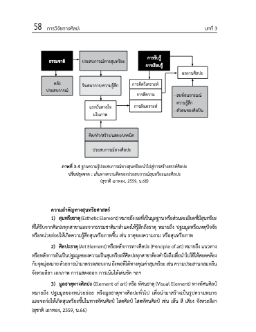 ภาพที่ 3-4 ฐานความรู้ประสบการณ์ทางสุนทรียะนาไปสู่การสร้างสรรค์ศิลปะ ปรับปรุงจาก : เส้นทางความคิดของประสบการณ์สุนทรียะและศิลปะ (สุชาติ เถาทอง, 2559, น.68)