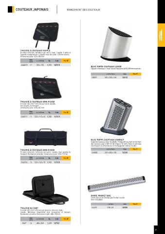 TROUSSE À COUTEAUX SEMI-RIGIDE L x H x P mm Code Prix HT