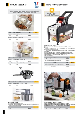 MOULINS À LÉGUMES COUPE-TOMATES ET "ROUET"