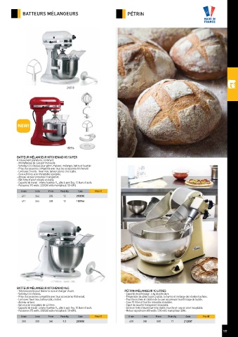 - Livré avec fouet inox, batteur plat, crochet. - Fourche inclinée et rotation de la cuve assurée par le pétrissage de la pâte.