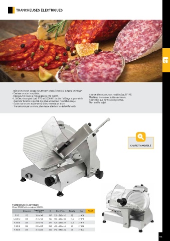 - Couteau en acier inoxydable. Chariot démontable, tous modèles (sauf F195).