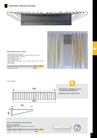 - Position séchage avec verrouillage des écartements de 50 mm entre 2 barres.