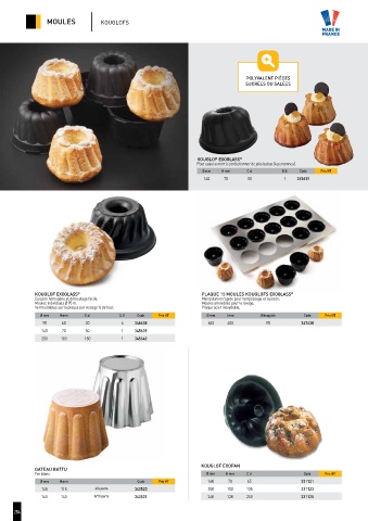 Ø mm H mm C cl U.V. Code Prix HT Ø mm l mm Ø kouglofs Code Prix HT