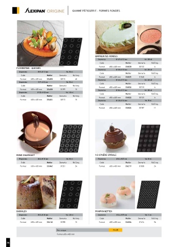 Format 600 x 400 mm 336024 00112 15 Empreintes Ø 125 x H 16 mm Vol. 75 ml