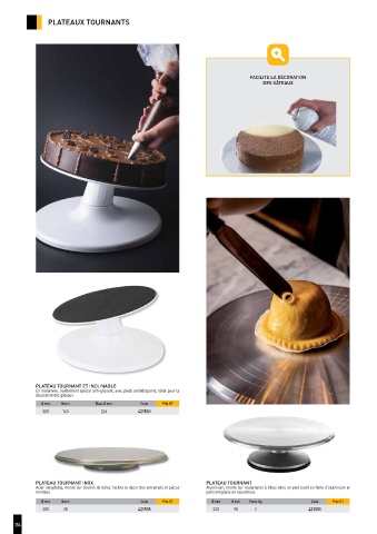 Acier inoxydable, monté sur chemin de billes, facilite le décor des entremets et pièces Aluminium, monté sur roulements à billes dans un pied lourd en fonte d’aluminium et