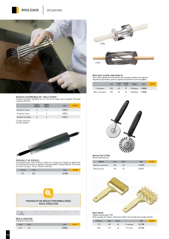 Coupe-bandes pour tartes grillées, variation de la largeur des bandes en répartissant Modèle L mm Ø mm Code Prix HT