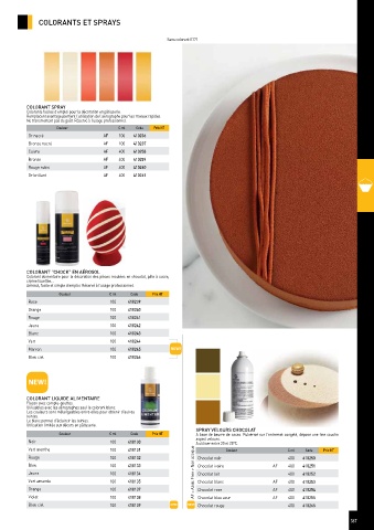 Couleur C ml Code Prix HT A base de beurre de cacao. Pulvérisé sur l’entremet congelé, dépose une fine couche