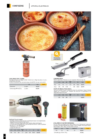 A utiliser exclusivement avec cartouches de gaz code 662303. Livrés par cartons de 28. L mm l mm kW Poids V Hz Code Prix HT