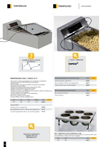 - Possibilité de connecter une sonde (option) sur la tempéreuse affichant la température du Accessoires pour trempeuses choco 15R seulement Code Prix HT