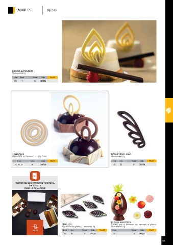 Pour décorer les gâteaux. 21 empreintes. 5 g. 10 empreintes. 6 g.