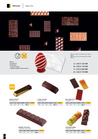 Selon les moules, les dimensions des plaques