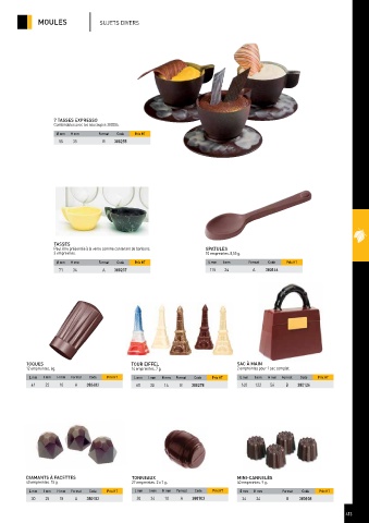 40 empreintes. 15 g. 27 empreintes. 2 x 7 g. 40 empreintes. 9 g.