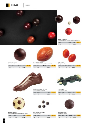4 empreintes, 70 g. Moule double avec points d’assemblage pour 1 ballon. 45 empreintes. 10 g.