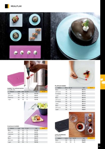 BARRETTES DÉGUSTATION Couleurs Ø mm Ep. mm Code Prix HT