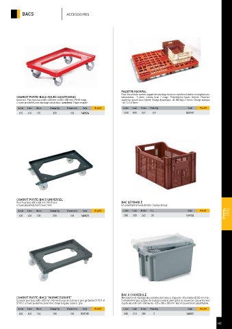 L mm l mm H mm Charge Kg Ø roue mm Code Prix HT L mm l mm H mm C.L. Code Prix HT