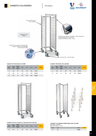 CHARIOTS À GLISSIÈRES PÂTISSERIE