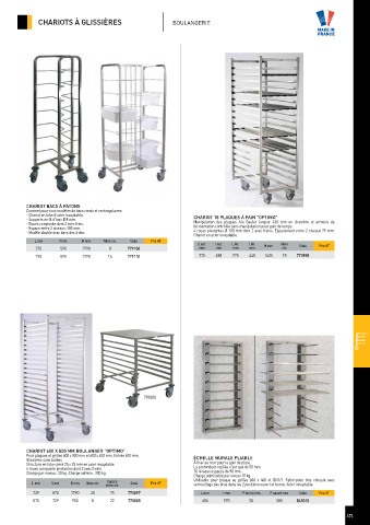 CHARIOTS À GLISSIÈRES BOULANGERIE